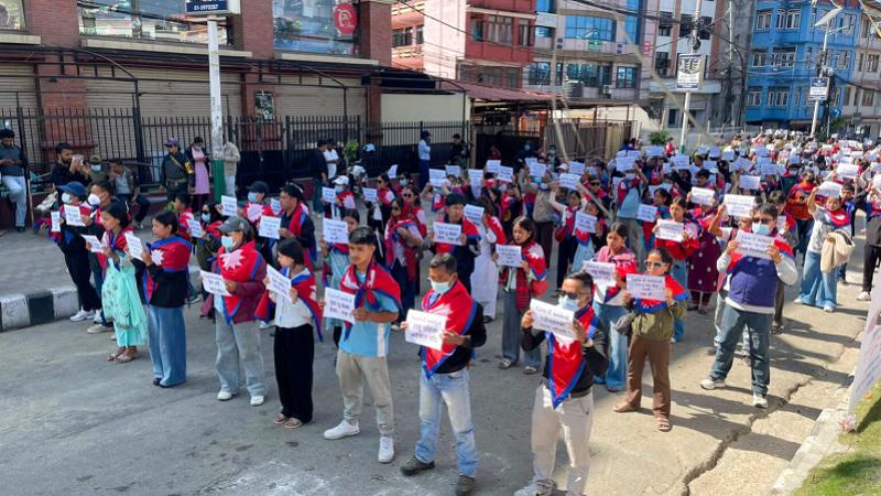 Oct 24, Kathmandu - The Gen-Z have continued their peaceful protest in Maitighar today to fulfill their demands. Raising their voices in favor of their rights and demands, members of the Gen-Z community have also peacefully protested in Maitighar Mandala today. They have warned of continued pressure on the government, saying it has not paid attention to their demands.