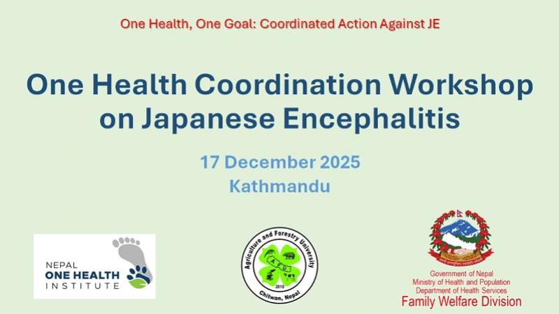 Dec 18, Kathmandu - A one-day One Health Coordination Workshop with the objective of strengthening multi-sectoral collaboration for the prevention and control of Japanese Encephalitis (JE) in Nepal has been successfully concluded in Kathmandu. The workshop was organized by Nepal One Health Institute in collaboration with the Family Welfare Division under the Department of Health Services and the Agriculture and Forestry University.